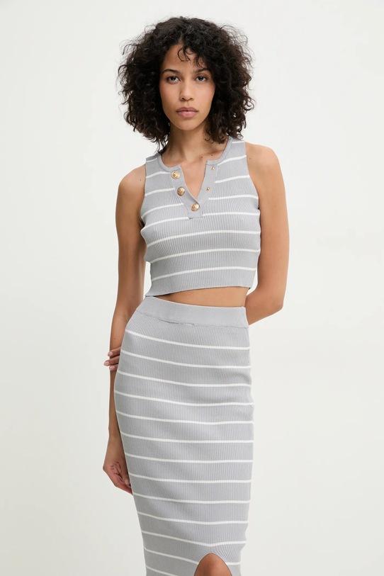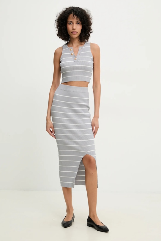 Свитер и юбка из коллекции Answear.LAB, выполненные из трикотажного полотна с рисунком. Модель выполнена из эластичного, облегающего материала. - Приталенный крой, подчеркивающий силуэт. - Классический круглый вырез. - Короткая застежка-кнопка обеспечивает эффективную вентиляцию и легкость надевания и снимания. - Нерегулируемые лямки не соскальзывают с плеч, обеспечивая комфорт во время занятий. - Высокая талия обеспечивает комфорт во время занятий спортом и позволяет визуально стройнить фигуру. - Эластичный пояс предотвращает скольжение во время движения. - Впечатляющий крой. - Трикотаж средней толщины. - Длина: 42 см. - Ширина под мышками: 32 см. - Ширина талии: 34 см. - Длина юбки: 88 см. - Указаны размеры: S/M.