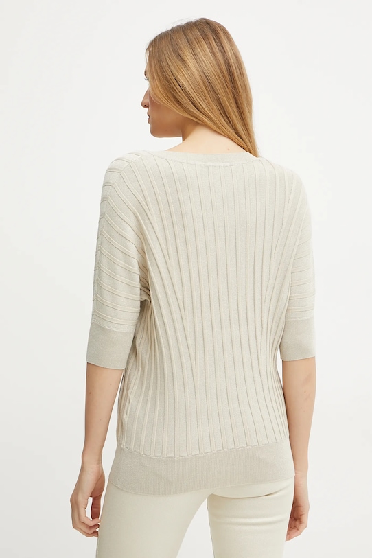 Эта футболка из коллекции Morgan выполнена из эластичного трикотажа. Эффектный, мерцающий материал с металлизированной нитью. Этот продукт изготовлен из EcoVero, вискозы, сертифицированной Lenzing. Этот материал получают из древесной целлюлозы из лесов, находящихся под охраной окружающей среды. Производство осуществляется в замкнутом цикле без использования химикатов, что делает его более экологичным, а сам материал — более приятным на ощупь. Ecovero дышащий, его волокна впитывают влагу и регулируют температуру, что делает его идеальным для любого сезона. Он биоразлагаемый (разлагается естественным образом). - Обычная посадка. - Острый вырез. - Рукава отделаны резинкой. - Нижний край отделан ребристым манжетом. - Материал с металлической нитью.