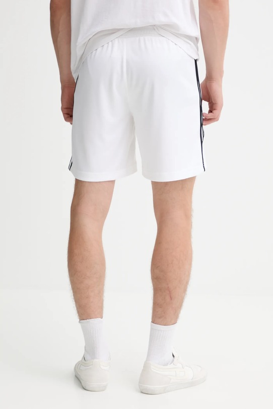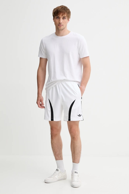 Эти шорты adidas Originals изготовлены из тонкой эластичной ткани. Полиэстер обеспечивает высокую устойчивость к сминанию. - Полиэстер, использованный при изготовлении этой модели, полностью переработан. - Свободный крой, обеспечивающий полную свободу движений. - Эластичный пояс и дополнительная внутренняя регулировка ширины с помощью шнурков для предотвращения сползания во время движения. - Свободная нога. - Два прорезных боковых кармана на молнии. - Сетчатые панели способствуют вентиляции. - Модель с полосками. - Логотип бренда вышит спереди. - Ширина талии: 38 см. - Ширина бедер: 58 см. - Высота талии: 32 см. - Ширина штанины: 35 см. - Длина внешней части штанины: 45 см. - Размеры указаны для размера: M.