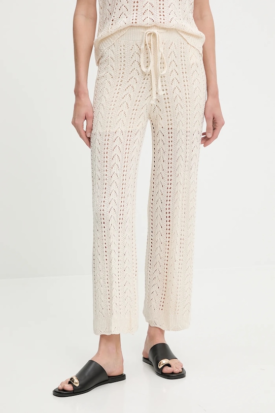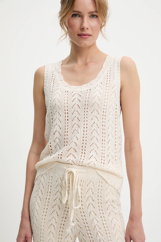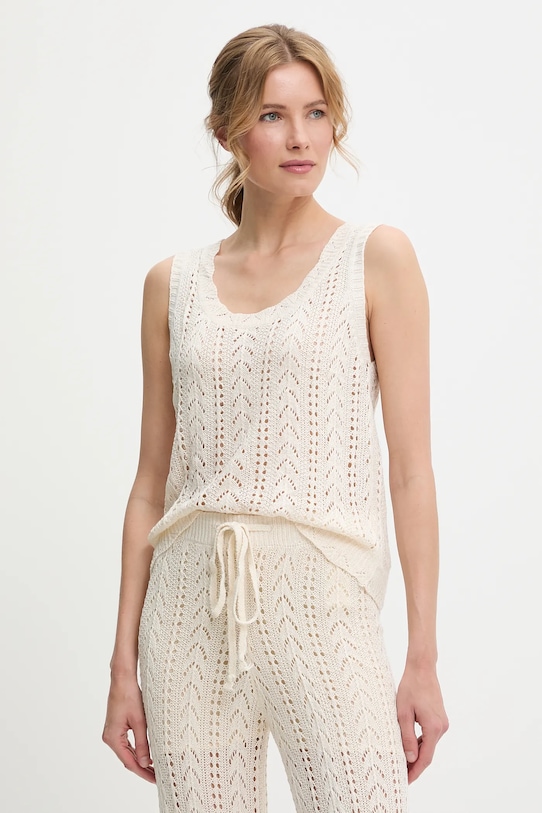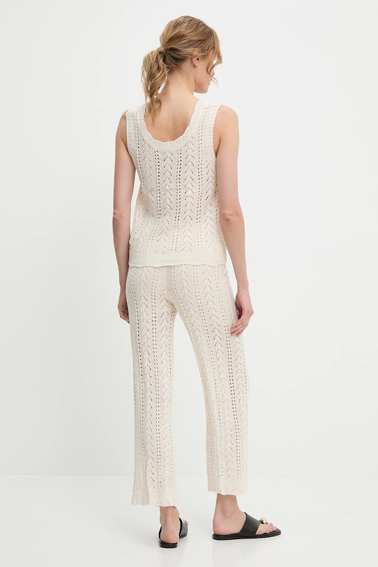 Блузка и брюки из коллекции Answear.LAB из тонкого, эластичного трикотажа. Модель выполнена из исключительно комфортного и дышащего материала, идеально подходящего для теплого времени года. - Простой дизайн, не стесняющий движений. - Нерегулируемые, несъемные лямки. - Классический круглый вырез. - Брюки облегают бедра и ягодицы. - Прямая нога полной длины. - Высокая талия с резинкой предотвращает скольжение во время движения. - Регулировка ширины талии с помощью шнурков. - Ширина талии: 35 см. - Ширина бедер: 43 см. - Высота талии: 30 см. - Ширина штанины внизу: 24 см. - Ширина штанины: 25 см. - Длина внешней части штанины: 93 см. - Длина: 59 см. - Ширина под мышками: 47 см. - Указаны размеры: S/M.