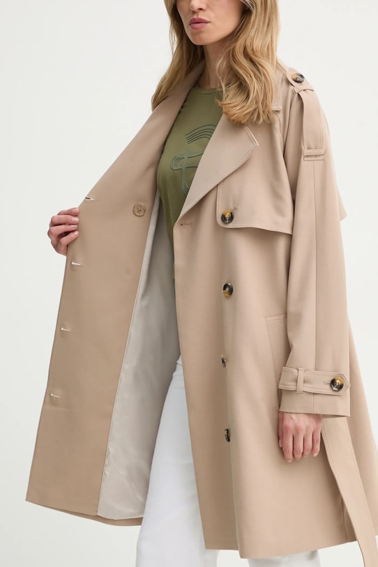 Тренч из коллекции Bruuns Bazaar. Модель без подкладки выполнена из гладкой ткани. Содержание полиэстера делает материал менее мнущимся. - Свободный крой, обеспечивающий полную свободу движений. - Дополнительный слой материала в виде подкладки. - Классические лацканы. - Двубортный пиджак с застежкой на пуговицы. - Текстильный ремешок в комплекте. - Рукава реглан благодаря своей конструкции обеспечивают большую свободу движений. - Погоны на плечах. - Два боковых накладных кармана. - Дополнительный внутренний карман позволяет безопасно хранить мелкие предметы. - Тонкая, слегка эластичная ткань. - Длина рукава (от воротника): 74 см. - Длина: 95 см. - Ширина под мышками: 56 см. - Размеры указаны для размера: 36.