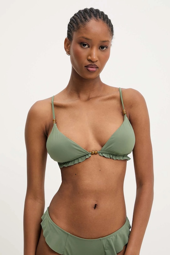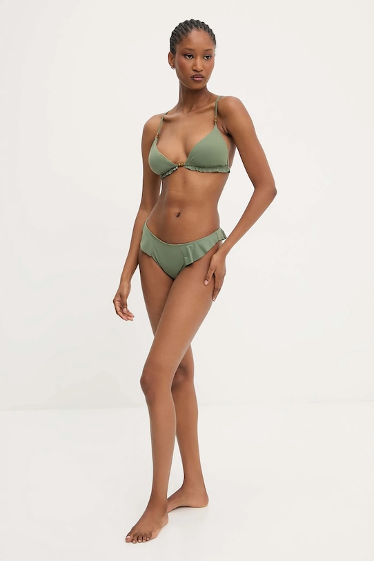 Раздельный купальник из коллекции Answear LAB. Изготовлен из гладкого полиамида, обеспечивающего повышенную прочность. - В комплект входят трусики-бюстгальтер и чашки со слегка уплотненными вставками. - Модель с декоративными оборками. - Съемные подушечки слегка придают жесткость, стабилизируют бюст и обеспечивают дополнительную защиту. - Модель с несъемными бретелями. - Завязки обеспечивают индивидуальную посадку. - Завязки сзади для регулирования. - Чашка с дополнительным слоем материала в виде подкладки. - Приталенный крой со средней посадкой на талии предотвращает сползание во время движения. - Дополнительный слой материала в виде подкладки увеличивает покрытие и обеспечивает дополнительный комфорт во время активности.