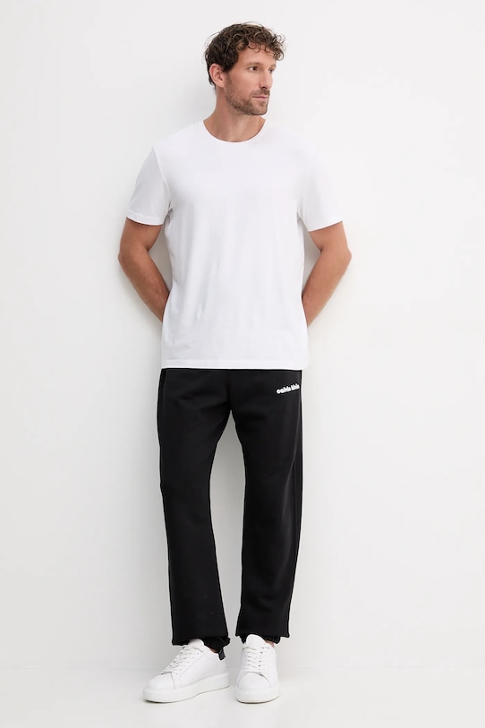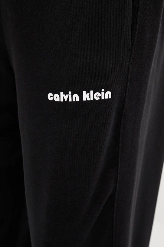 Эти спортивные брюки из коллекции Calvin Klein Jeans изготовлены из тонкой эластичной ткани. Они исключительно удобные и дышащие, идеально подходят для теплого времени года. - Данное изделие частично изготовлено из переработанного полиэстера. - Брюки свободные в области бедер и ягодиц. - Ножки отделаны удобными эластичными манжетами. - Эластичный пояс и дополнительная внутренняя регулировка ширины с помощью шнурков для предотвращения сползания во время движения. - Два боковых накладных кармана. - Модель с принтом. - Ширина талии: 41 см. - Ширина бедер: 56 см. - Высота талии: 37 см. - Ширина штанины внизу: 15 см. - Ширина штанины: 33 см. - Длина внешней части штанины: 108 см. - Размеры указаны для размера: M.