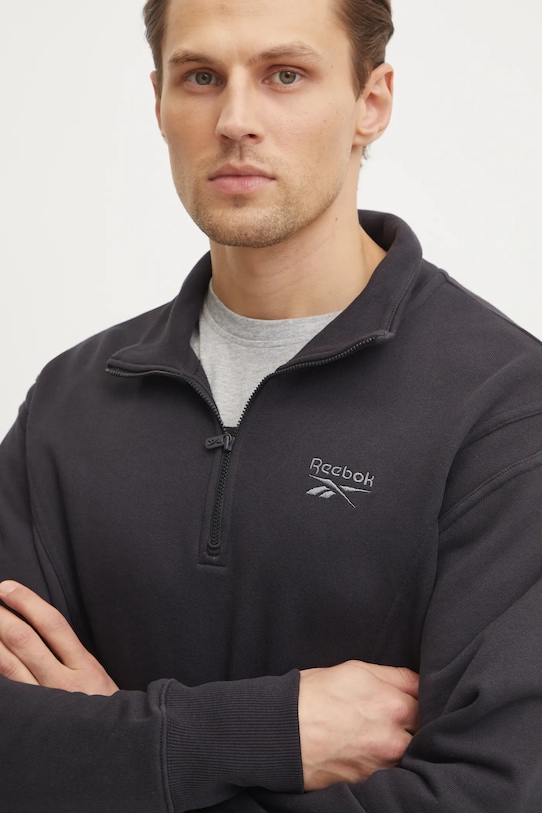 Эта толстовка из коллекции Reebok Classic выполнена из тонкой эластичной ткани. Модель выполнена из дышащего хлопкового материала. - Свободный крой, обеспечивающий полную свободу движений. - Поднятый воротник обеспечивает дополнительную защиту от холода. - Короткая застежка-молния обеспечивает эффективную вентиляцию и легкость надевания и снимания. - Длинный рукав. - Крой рукава со спущенной линией плеча не ограничивает подвижность. - Практичный вставной карман-кенгуру спереди. - Рукава и низ изделия отделаны манжетами для защиты от неблагоприятных погодных условий. - Логотип бренда вышит спереди. - Длина рукава (от воротника): 86 см. - Длина: 72 см. - Ширина под мышками: 56 см. - Размеры указаны для размера: M.