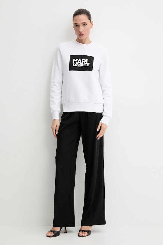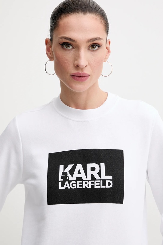 Эта толстовка Karl Lagerfeld выполнена из эластичного трикотажа. Модель выполнена из исключительно комфортного хлопкового материала. - Модели линейки Karl Cares изготовлены из материалов, произведенных в ходе устойчивого, экологически чистого процесса производства. - Изделие изготовлено из органического хлопка. - Свободный крой, обеспечивающий полную свободу движений. - Модель с принтом. - Круглый вырез. - Длина: 61 см. - Ширина под мышками: 46 см. - Размеры указаны для размера: S.