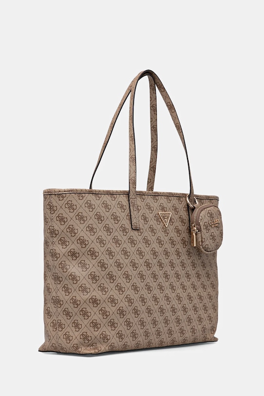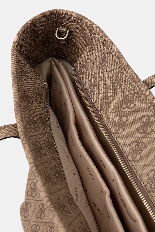 Большая сумка из коллекции Guess. Модель на молнии, выполнена из экокожи. В комплект входит сумка меньшего размера. - Содержит переработанный пластик. - Модель комплектуется кошельком для монет на молнии. - Застежка-молния. - Ручки для удобной переноски в руке или на плече. - Модель оснащена металлическими ножками, защищающими дно сумки. - Модель на подкладке. - Вмещает формат А4. - Входящий в комплект тканевый чехол защищает изделие от пыли. - Ремешок на задней панели позволяет прикрепить к ручке чемодана. - Имеет три отделения. - Карман на молнии на задней стороне позволяет безопасно хранить мелкие предметы. - Длина ручки: 57 см. - Глубина: 14 см. - Высота: 31 см. - Ширина у основания: 40 см.