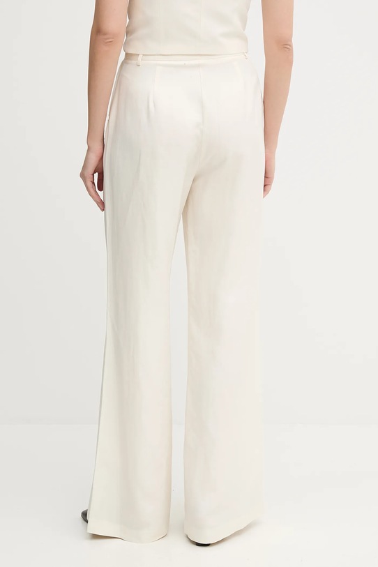 Брюки из коллекции Gaudi из тонкой, неэластичной ткани. Модель выполнена из дышащего материала с высоким содержанием вискозы. - Брюки слегка приталенные на бедрах. - Модель с высокой талией, застежкой на молнию, пуговицы и крючок. - Расклешенные штанины. - Два боковых накладных кармана. - Гладкая ткань. - Ширина талии: 36 см. - Ширина бедер: 52 см. - Высота талии: 32 см. - Длина по внутреннему шву: 84 см. - Длина внешнего шва: 117 см. - Размеры указаны для размера: 36.