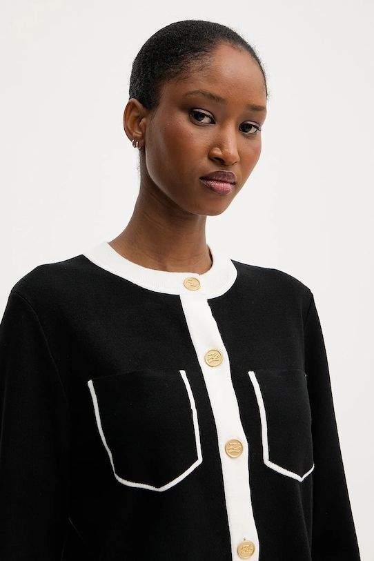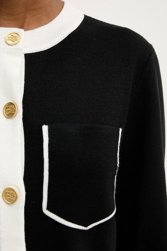 Этот кардиган из коллекции Karl Lagerfeld выполнен из гладкого, эластичного трикотажа. Он изготовлен из дышащего материала с высоким содержанием вискозы. - Простой дизайн, не стесняющий движений. - Длинный рукав. - Два накладных кармана на груди. - Удобная застежка на кнопки позволяет легко надевать и снимать. - Трикотаж средней толщины. - Модель отделана декоративной контрастной окантовкой. - Длина: 52 см. - Ширина под мышками: 48 см. - Размеры указаны для размера: S.