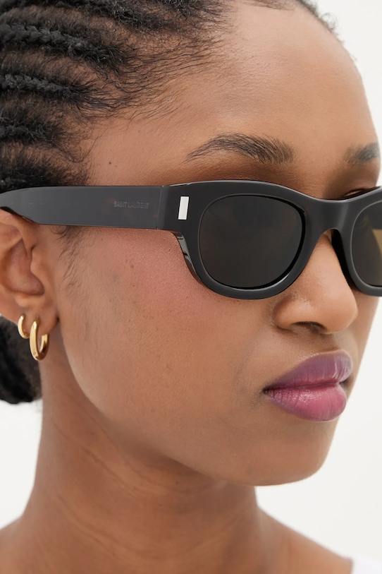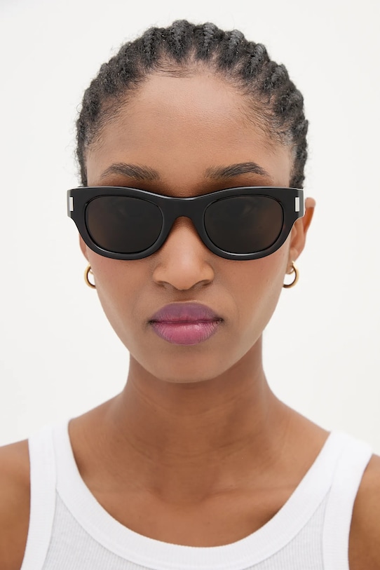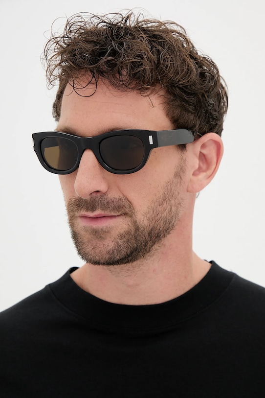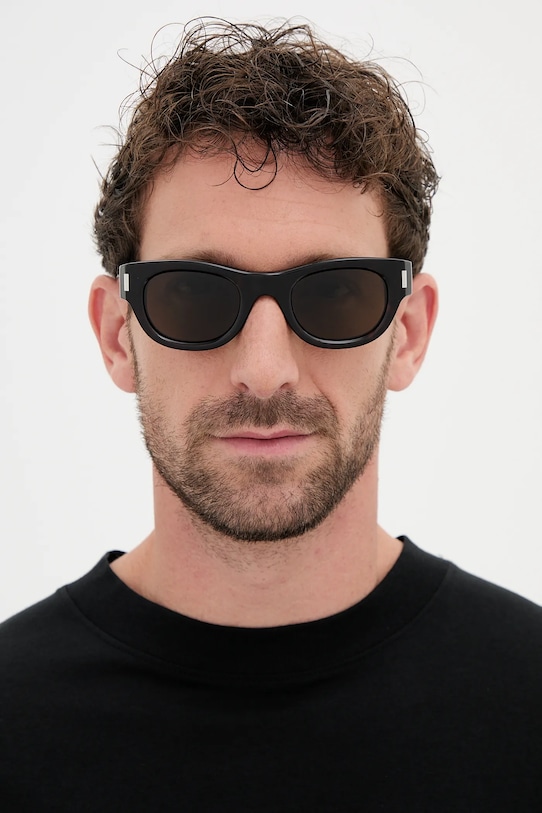 Солнцезащитные очки из коллекции Saint Laurent. Эта модель с гладкими линзами и пластиковой оправой имеет защиту UV 400. Полученный вами футляр может отличаться от изображенного на фотографии. Футляры отправляются производителем случайным образом, поэтому выбрать конкретный футляр невозможно. - Фильтр UV 400 обеспечивает максимальную защиту от солнечного излучения. - Категория 3 (пропускает 8–18% света) — самая распространённая и универсальная категория затемняющих фильтров. Очки категории 3 идеально подходят для повседневного использования в солнечные дни и для отдыха в жарких странах. - В комплект модели входят чехол и салфетка для протирки очков. - Ширина рамы: 140 мм. - Ширина линзы: 50 мм. - Размеры указаны для размера: 49.