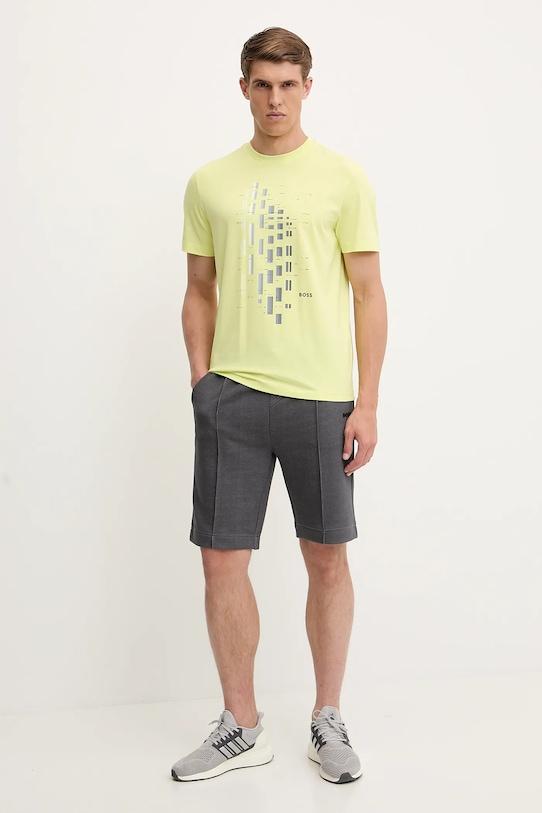Шорты из коллекции BOSS Green, выполненные из тонкого, слегка эластичного трикотажа. Материал мягкий и приятный на ощупь. - Шорты слегка приталенные на бедрах. - Прямая нога полной длины. - Эластичный пояс и дополнительная регулировка ширины с помощью шнурков для предотвращения сползания во время движения. - Два боковых накладных кармана. - Накладной карман сзади, без застежки. - Плоские швы защищают кожу от натирания и раздражения и обеспечивают высокий уровень комфорта во время занятий спортом. - Ширина талии: 44 см. - Ширина бедер: 57,5 см. - Высота талии: 35,5 см. - Ширина штанины внизу: 29 см. - Ширина штанины: 30,5 см. - Длина внешней части штанины: 58 см. - Размеры указаны для размера: M.