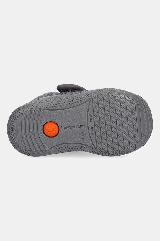 Детские тапочки из коллекции Biomecanics, изготовленные из текстильного материала. Лёгкие и удобные, идеально подходят для повседневной носки. - Они были созданы в сотрудничестве с педиатрами и инженерами Института биомеханики в Валенсии. - Легко надевается и хорошо сидит благодаря застежке-липучке. - Они имеют боковой стабилизатор, который контролирует боковое движение стопы. - Защищенный носок предохраняет пальцы ног от травм. - Съемная антибактериальная стелька, профилированная в области плюсны. - Резиновая подошва чрезвычайно прочная и устойчивая к повреждениям. - Текстильная внутренняя часть комфортна для ног и облегчает содержание обуви в чистоте. - Длина вставки: 14 см. - Размеры указаны для размера: 22.