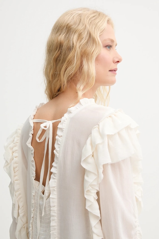 Эта блузка из коллекции MUNTHE выполнена из тонкой, неэластичной ткани. Модель выполнена из исключительно комфортного материала с высоким содержанием вискозы. - Изготовлено из экологически чистого материала LENZING ECOVERO. LENZING ECOVERO производится из органической целлюлозы и древесной массы, используя на 50% меньше воды, чем популярная вискоза. - Простой дизайн, не стесняющий движений. - Классический круглый вырез. - Эластичная вставка сзади. - Модель с регулируемой шнуровкой. - Рукав три четверти. - Рукава с декоративными оборками. - Модель с декоративными оборками. - Плоские швы защищают кожу от ссадин и раздражения. - Длина: 58 см. - Ширина под мышками: 49 см. - Размеры указаны для размера: 36.