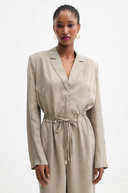 Этот комбинезон Guess выполнен из гладкой ткани. Эта модель выполнена из исключительно комфортного материала с высоким содержанием лиоцелла. - Модель частично изготовлена из волокон TENCEL Lyocell, полученных из целлюлозы деревьев, выращенных в сертифицированных лесах. - Простой дизайн, не стесняющий движений. - Застежка-молния и кнопки. - Завязки на талии. - Два боковых накладных кармана. - В плечах вшиты подкладки. - Тонкая, неэластичная ткань. - Длина рукава: 62 см. - Ширина под мышками: 53 см. - Ширина талии: 38 см. - Высота талии: 28 см. - Ширина штанины внизу: 30 см. - Ширина штанины: 34 см. - Длина по внутреннему шву: 86 см. - Длина: 160 см. - Размеры указаны для размера: S.