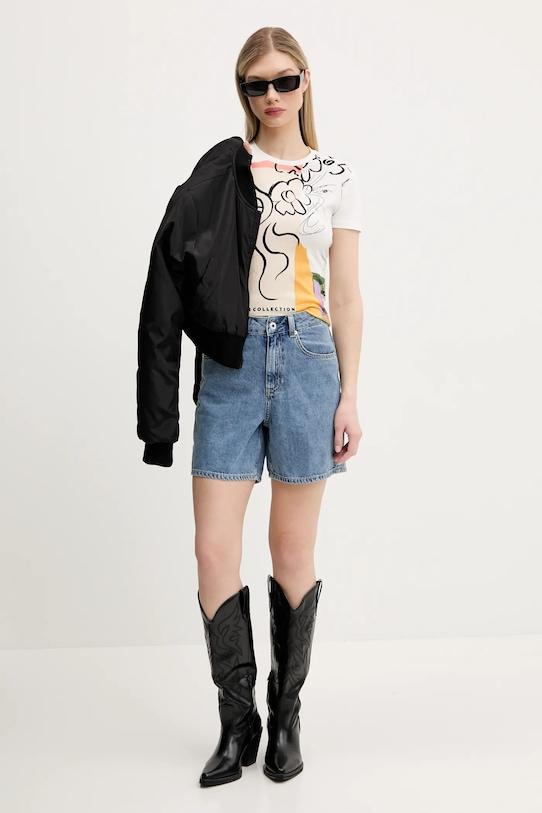 Шорты из коллекции Karl Lagerfeld Jeans, выполненные из денима. Изготовленные из исключительно комфортного и дышащего материала, эти шорты идеально подойдут для теплого времени года. - Органический хлопок выращивается без использования вредных химикатов, химических пестицидов и искусственных удобрений. - Простой дизайн, не стесняющий движений. - Прямая нога полной длины. - Модель с высокой талией, застежкой на пуговицы и молнию. - Три накладных кармана спереди. - Два накладных кармана на ягодицах. - Ширина талии: 33 см. - Ширина бедер: 49,5 см. - Высота талии: 28,5 см. - Ширина штанины внизу: 29,5 см. - Ширина штанины: 33 см. - Длина внешней части штанины: 43 см. - Размеры указаны для размера: 26.