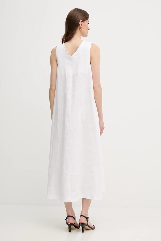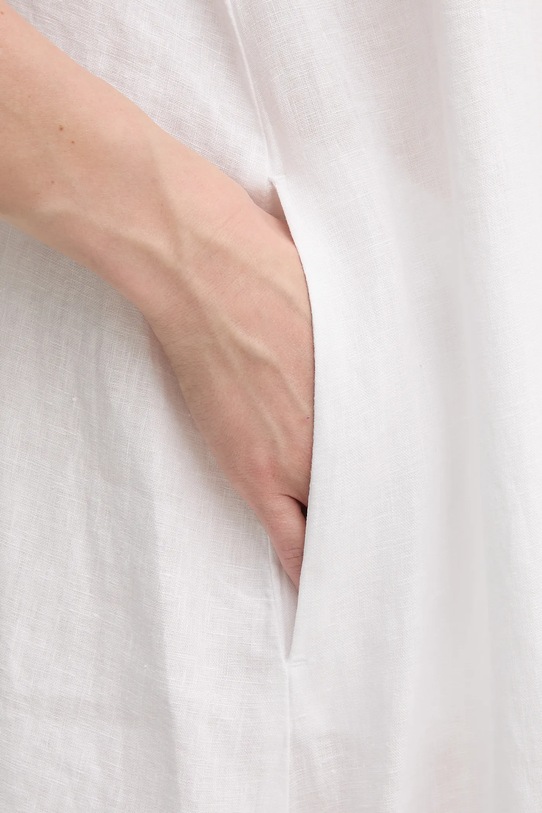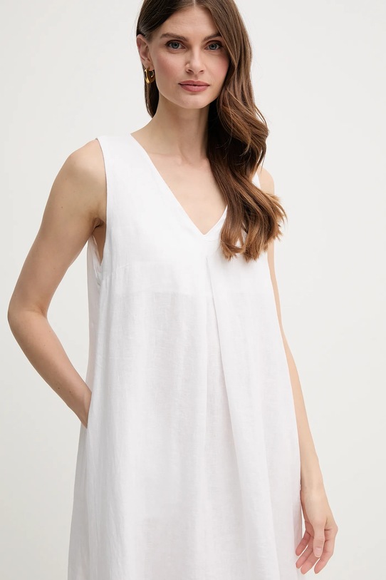 Лёгкое платье из коллекции United Colors of Benetton, выполненное из гладкой ткани. Эта модель выполнена из дышащего льняного материала. - Изготовлено из льна, выращенного в Европе. Производство с меньшим использованием природных ресурсов. - Расклешенный крой. - Острый вырез. - Потайная застежка-молния. - Модель с накладными карманами. - Декоративная закладка. - Тонкая, неэластичная ткань. - Длина: 133 см. - Ширина под мышками: 45 см. - Ширина талии: 62 см. - Размеры указаны для размера: S.