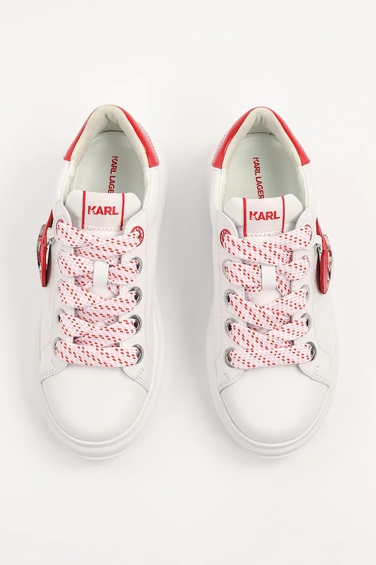 Кроссовки из коллекции Karl Lagerfeld. Изготовлены из комбинации натуральной и обработанной кожи, оснащены подошвой из ЭВА для лёгкости, комфорта и превосходной амортизации. - Круглый, жёсткий носок. - Внутренняя часть выполнена из биовег-материала Musika, который является экологичной альтернативой натуральной коже и содержит сырье биологического происхождения. - Удобная стелька. - Усиленный задник обеспечивает отличную поддержку лодыжки и пятки. - Плоские шнурки устраняют давление на подъем стопы, обеспечивая хорошую посадку и комфорт. - Модель с декоративной подвеской сбоку. - Контрастный задник. - Платформенная модель. - Подошва из пеноматериала обеспечивает более мягкое ощущение и дополнительную амортизацию.