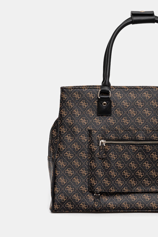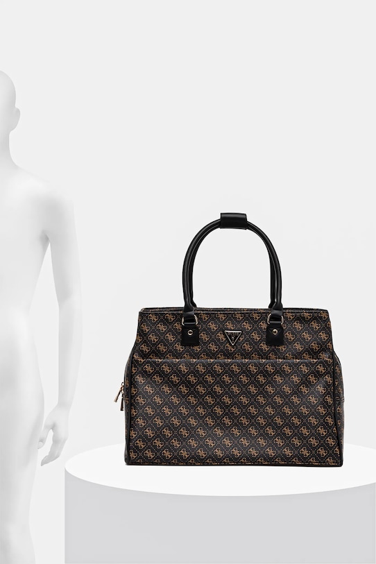 Большая сумка из коллекции Guess. Модель на молнии, выполнена из экокожи. - Он состоит из трех камер. - Застежка-молния. - Модель на подкладке. - Имеет отдельное отделение на липучке для ноутбука или планшета. - Имеет карабин, к которому можно прикрепить ключи. - Обширная система карманов позволяет легко и безопасно хранить необходимые вещи. - Длинные ручки для удобной переноски в руке или на плече. - Вмещает формат А4. - Модель оснащена металлическими ножками, защищающими дно сумки. - Количество внутренних накладных карманов: 3. - Количество внутренних карманов на молнии: 1. - Количество внешних карманов на молнии: 1. - Глубина: 18,5 см. - Высота: 33 см. - Ширина у основания: 46 см.