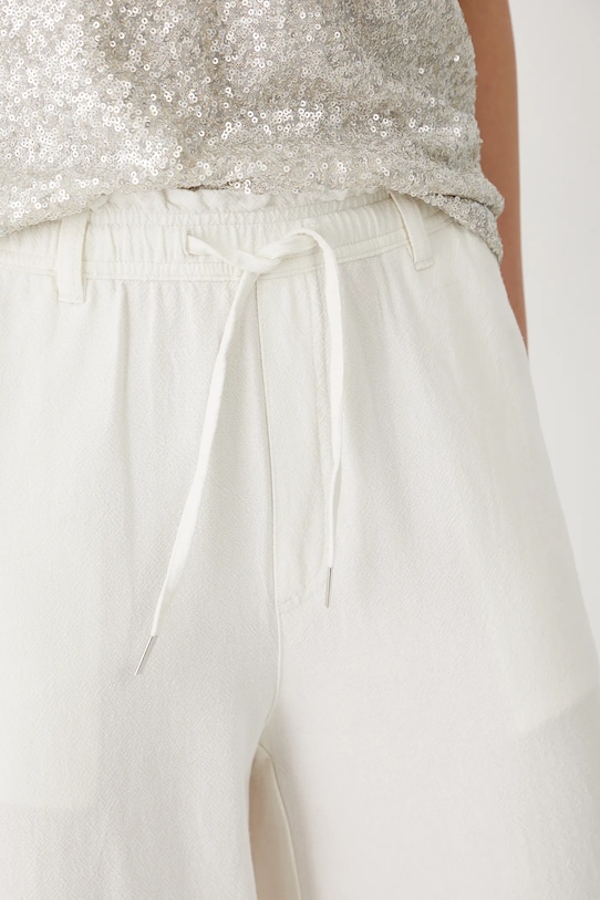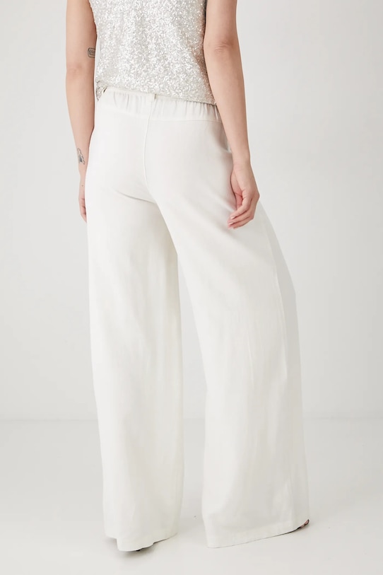 Брюки из коллекции «Медицина». Изготовлены из гладкой ткани. - Материал с сертификатом OEKO-TEX Standard 100 гарантирует, что текстильные изделия, на которых он нанесен, не содержат вредных и потенциально опасных для человека и окружающей среды веществ. - Материал с добавлением льна обеспечивает комфорт и воздухопроницаемость. - Широкий фасон штанины. - Обхват талии обычный. - Эластичный пояс со шнурками. - Накладные карманы. - Широкие штанины. - Гладкая ткань. - Ширина талии (до растягивания): 37 см. - Ширина талии (после растяжения): 46 см. - Ширина бедер: 52 см. - Высота талии: 28 см. - Ширина штанины внизу: 37 см. - Длина по внутреннему шву: 80 см. - Размеры указаны для размера: S.