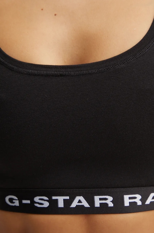 Спортивный бюстгальтер из коллекции G-Star. Модель выполнена из гладкого трикотажного полотна, эластичного и облегающего. - Этот продукт изготовлен из сертифицированного органического хлопка, который выращен и собран из растений, не содержащих ГМО, без использования химических удобрений и пестицидов. - Мягкая чашка без косточек и других жестких элементов обеспечивает полный комфорт использования. - Нерегулируемые лямки не соскальзывают с плеч, обеспечивая комфорт во время занятий. - Эластичная, не сдавливающая вставка внизу усиливает поддержку груди и обеспечивает правильное прилегание к телу. - Дополнительный слой материала в виде подкладки увеличивает покрытие и обеспечивает дополнительный комфорт во время активности.