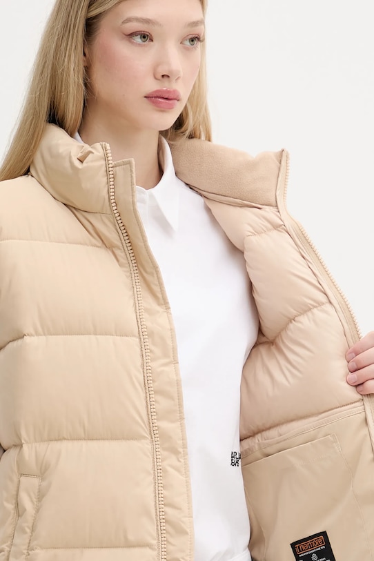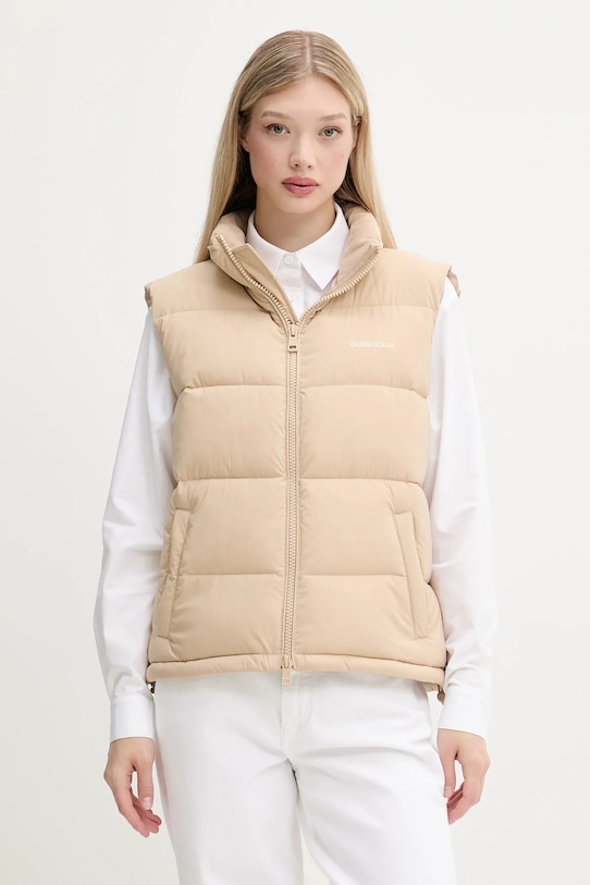 Жилет из коллекции Guess Jeans. Утеплённая модель из гладкой ткани. Синтетический наполнитель Thermore ECODOWN, полностью изготовленный из волокон переработанных ПЭТ-бутылок, является экологичной альтернативой натуральному пуху. Этот утеплитель обеспечивает высокий уровень защиты от холода, при этом он прост в уходе, долговечен и легко сжимается. - Простой дизайн, не стесняющий движений. - Два боковых кармана для рук с застежками-молниями. - Удобная застежка-молния позволяет легко надевать и снимать. - Нижний край отделан кулиской со стопорами, которая благодаря возможности регулирования обхвата низа повышает изоляцию от холода. - Длина: 61 см. - Ширина под мышками: 56 см. - Размеры указаны для размера: S.