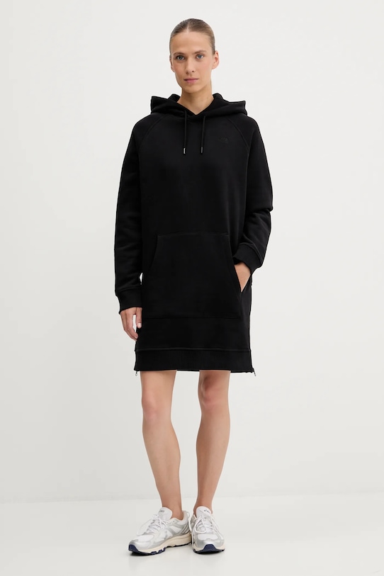Это платье из коллекции The North Face выполнено из плотного, слегка эластичного трикотажа. Мягкая подкладка обеспечивает высокий комфорт. - Модель мини-длины. - Обычная посадка. - Модель с капюшоном. - Капюшон с завязками обеспечивает дополнительное тепло и защиту при необходимости. - Длинные рукава реглан. - Рукава и низ изделия отделаны манжетами для защиты от неблагоприятных погодных условий. - Молнии по бокам платья. - Практичный вставной карман-кенгуру спереди. - Мягкая внутренняя отделка обеспечивает высокий комфорт использования и оптимальный тепловой комфорт. - Длина: 90 см. - Ширина под мышками: 55 см. - Длина рукава (от капюшона): 76 см. - Размеры указаны для размера: S.
