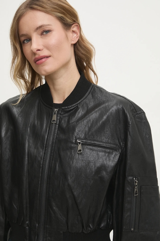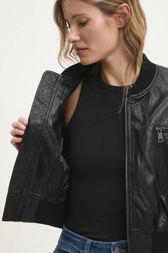Куртка из коллекции Answear.LAB. Эта модель без подкладки выполнена из искусственной кожи. Модель выполнена из тонкого материала, идеально подходящего для теплого времени года. - Свободный крой, обеспечивающий полную свободу движений. - Удобная застежка-молния позволяет легко надевать и снимать. - Крой рукава со спущенной линией плеча не ограничивает подвижность. - Рукава и низ изделия отделаны манжетами для защиты от неблагоприятных погодных условий. - Нагрудный карман на молнии. - Дополнительный карман на рукаве позволяет хранить необходимые вещи. - Неутепленная модель с подкладкой. - Длина рукава (от воротника): 75 см. - Длина: 47 см. - Ширина под мышками: 53 см. - Указаны размеры: S/M.