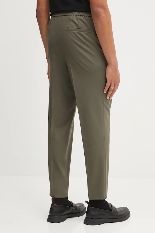Эти брюки HUGO изготовлены из гладкой ткани. Высокое содержание шерсти обеспечивает защиту от холода, а добавление полиэстера повышает устойчивость к сминанию. - Брюки облегают бедра и ягодицы. - Эластичный пояс предотвращает скольжение во время движения. - Модель со стандартной талией, застежкой на пуговицы и молнию. - Плотно прилегающие, зауженные к низу штанины. - Ножки отутюжены до складок. - Два боковых накладных кармана. - Два накладных кармана на ягодицах. - Тонкая, гибкая ткань. - Ширина талии: 44 см. - Ширина бедер: 53 см. - Высота талии: 31 см. - Ширина штанины внизу: 18 см. - Ширина штанины: 29 см. - Длина внешнего шва: 100 см. - Размеры указаны для размера: 48.