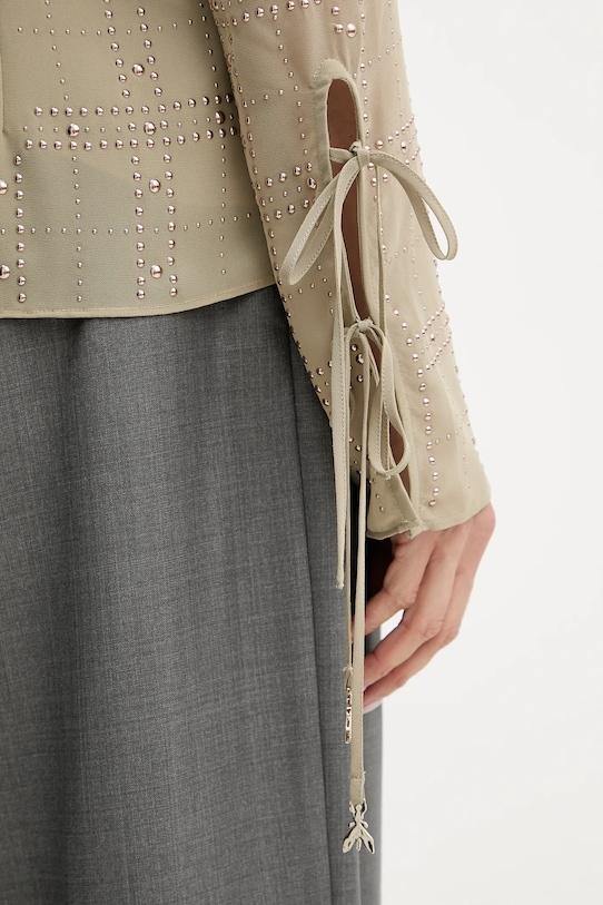 Эта блузка Patrizia Pepe выполнена из тонкой, неэластичной ткани. Полиэстер обеспечивает лучшую устойчивость к сминанию. - Модель из линейки Go Green, изготовленная из волокон, полученных с использованием экологичных производственных процессов, что снижает их воздействие на окружающую среду. - Простой дизайн. - Модель с переплетом. - Модель со стразами. - Длина: 63 см. - Длина рукава: 64 см. - Ширина под мышками: 47 см. - Размеры указаны для размера: 36.