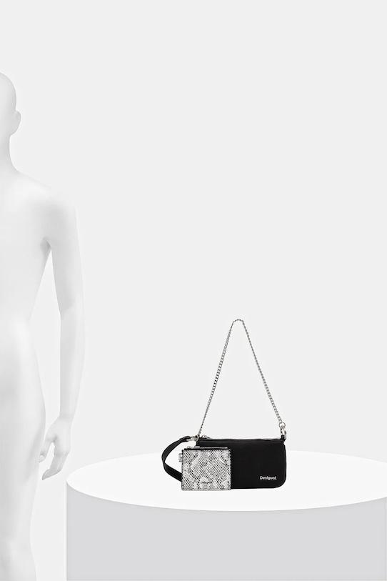 Небольшая сумочка из коллекции Desigual. Модель на молнии изготовлена из искусственной кожи, которую легко чистить и ухаживать. В комплект входит кошелек. - Отделение на молнии. - Карман с магнитной застежкой на задней стороне. - В комплект модели входит небольшой кошелек. - Сумка для ношения в руке или на плече. - Съемный регулируемый ремешок позволяет индивидуально подогнать посадку. - Модель с декоративной съемной цепочкой. - Не подходит для формата А4. - Модель на подкладке. - Минимальная длина ремешка: 85 см. - Максимальная длина ремня: 103 см. - Длина цепочки: 52 см. - Размеры кошелька: 10 см х 8,5 см. - Глубина: 2,5 см. - Высота: 11 см. - Ширина у основания: 19 см.