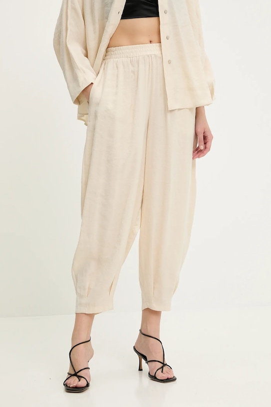 Рубашка и брюки из коллекции Answear.LAB, выполненные из тонкой, неэластичной ткани. Модель выполнена из исключительно комфортного материала с высоким содержанием модала. - Свободный крой, обеспечивающий полную свободу движений. - Удобная застежка на кнопки позволяет легко надевать и снимать. - Модель с воротником. - Длинный рукав. - Широкий эластичный пояс. - Свободная нога. - Повышенное состояние. - Два боковых накладных кармана. - Длина: 65 см. - Ширина под мышками: 68 см. - Ширина талии: 34 см. - Ширина бедер: 63 см. - Высота талии: 33,5 см. - Ширина штанины внизу: 17,5 см. - Ширина штанины: 36 см. - Длина внешней части штанины: 93 см. - Указаны размеры: S/M.