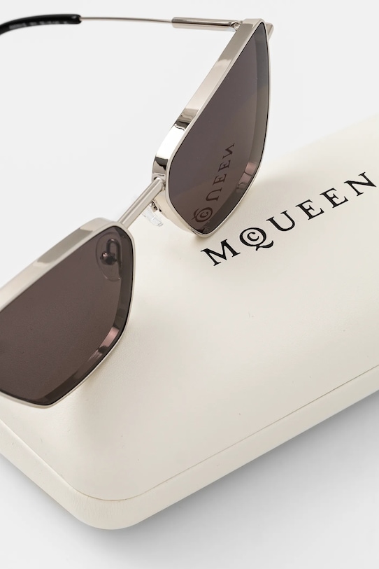 Солнцезащитные очки из коллекции Alexander McQueen. Эта модель с гладкими линзами и оправой из металла и пластика. Защита от ультрафиолета UV 400. Полученный вами футляр может отличаться от представленного на фотографии. Футляры отправляются производителем случайным образом, поэтому выбрать конкретный футляр невозможно. - Изделие содержит переработанные волокнистые материалы. - Фильтр UV 400 обеспечивает максимальную защиту от солнечного излучения. - Cat.2 (пропускает 18–43% света) — линзы со средней степенью затемнения. Очки с фильтром Cat.2 подходят для дней с низкой интенсивностью солнечного света. - В комплект модели входят чехол и салфетка для протирки очков. - Ширина линзы: 135 мм. - Вес изделия: 60 мм.