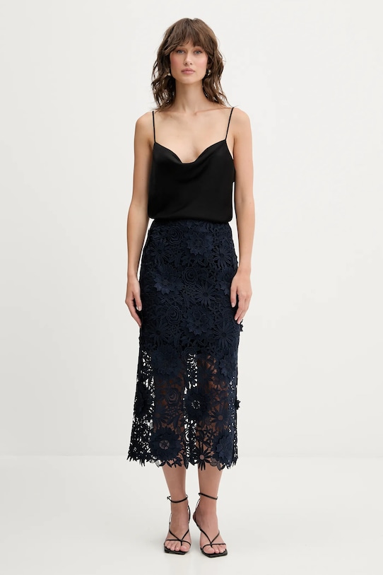 Эта юбка из коллекции Rotate выполнена из кружевной ткани. Изделие содержит переработанные волокна. - B Corporation — это сертификация, которая выдается компаниям, которые соответствуют самым высоким стандартам подтвержденной социальной и экологической эффективности, а также прозрачности для общественности для достижения баланса между прибылью и целями. - Полиэстер, использованный при изготовлении этой модели, полностью переработан. - Приталенный крой, подчеркивающий силуэт. - Дополнительный слой материала в виде подкладки. - Модель со стандартной талией, застегивающаяся на молнию и крючок. - Тонкая, неэластичная ткань. - Ширина талии: 35 см. - Длина: 85 см. - Размеры указаны для размера: 36.