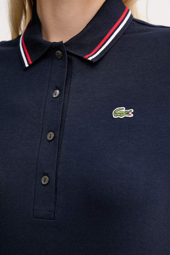 Эта рубашка-поло Lacoste выполнена из тонкого эластичного трикотажа. Благодаря содержанию модала она мягкая на ощупь и имеет приятную для кожи текстуру. «Создай более элегантный мир» — инициатива Lacoste, сочетающая моду и экологическую ответственность. Она пропагандирует устойчивый образ жизни и заботу об окружающей среде, побуждая людей делать осознанный выбор. - Приталенный крой, подчеркивающий силуэт. - Модель с мягким воротником. - Короткие рукава с удобными эластичными манжетами. - Застежка на короткие пуговицы обеспечивает эффективную вентиляцию и легкость надевания и снимания. - Модель с нашивкой на груди. - Длина: 60 см. - Ширина под мышками: 42 см. - Размеры указаны для размера: 36.