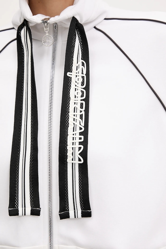 Эта толстовка из коллекции Sportalm выполнена из тонкой эластичной ткани. Изделие содержит переработанные волокна. - Данное изделие частично изготовлено из переработанного полиэстера. - Свободный крой, обеспечивающий полную свободу движений. - Удобная застежка-молния позволяет легко надевать и снимать. - Поднятый воротник с регулируемыми завязками обеспечивает дополнительную защиту от холода. - Крой рукава со спущенной линией плеча не ограничивает подвижность. - Нижний край отделан завязками со стопорами, обеспечивающими индивидуальную посадку. - Два боковых накладных кармана. - Модель с принтом на спине. - Длина: 58,5 см. - Ширина под мышками: 58 см. - Размеры указаны для размера: S.
