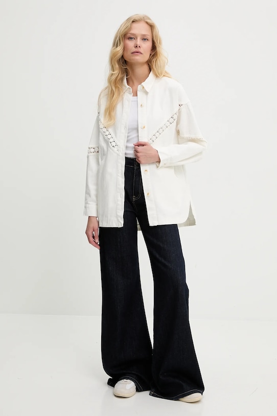 Куртка из коллекции Answear.LAB. Эта куртка без подкладки выполнена из хлопкового денима. Изготовлена из исключительно комфортной, дышащей хлопковой ткани. - Свободный крой, обеспечивающий полную свободу движений. - Неутепленная модель без подкладки. - Модель с воротником. - Крой рукава со спущенной линией плеча не ограничивает подвижность. - Мягкие манжеты с застежкой на пуговицы. - Два боковых накладных кармана. - Удобная застежка на кнопки позволяет легко надевать и снимать. - Удлиненный задний край обеспечивает защиту во время движения. - Модель с декоративной вышивкой. - Длина спереди: 70 см. - Длина спинки: 76 см. - Ширина под мышками: 54 см. - Указаны размеры: S/M.