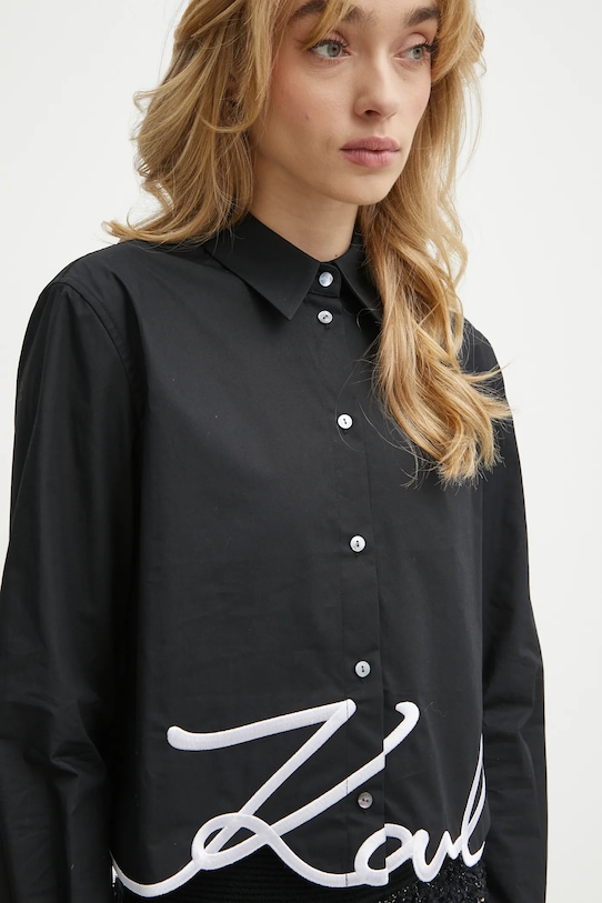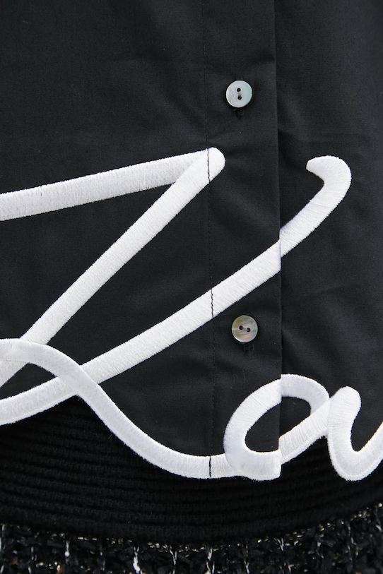 Эта рубашка Karl Lagerfeld выполнена из ткани с аппликацией. Она изготовлена из исключительно комфортного хлопка. - Органический хлопок выращивается без использования вредных химикатов, химических пестицидов и искусственных удобрений. - Простой дизайн, не стесняющий движений. - Застежка на пуговицы. - Манжеты на пуговицах. - Модель с воротником. - Длина рукава: 58 см. - Длина: 47 см. - Ширина под мышками: 49 см. - Размеры указаны для размера: 34.