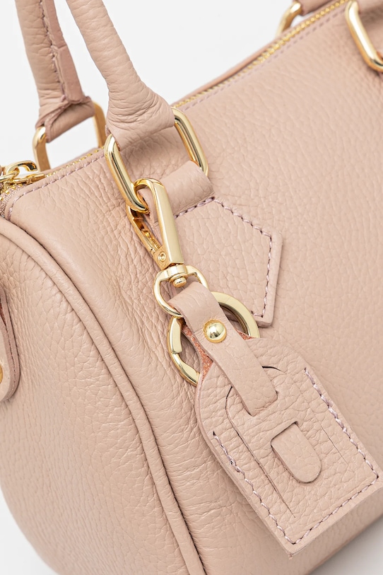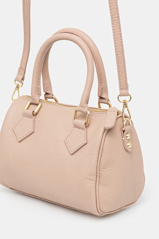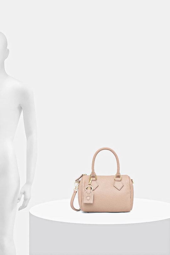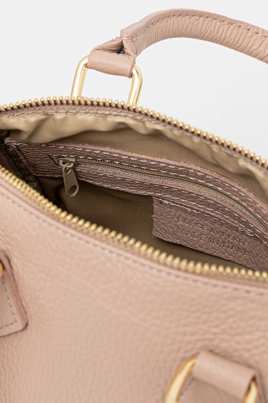 Небольшая сумочка из коллекции Answear.LAB. Модель на молнии выполнена из натуральной кожи. В комплект входит тканевый пыльник для защиты сумки от пыли. - Отделение на молнии. - Имеет внутренние карманы, в том числе один на молнии. - Модель оснащена металлическими ножками, защищающими дно сумки. - Сумка для ношения в руке или на плече. - Короткие ручки. - Съемный регулируемый ремешок позволяет индивидуально подогнать посадку. - Не подходит для формата А4. - Модель на подкладке. - В комплект модели входит брелок. - Количество внутренних карманов на молнии: 1. - Количество внутренних накладных карманов: 1. - Глубина: 13 см. - Высота: 16 см. - Ширина у основания: 21 см.