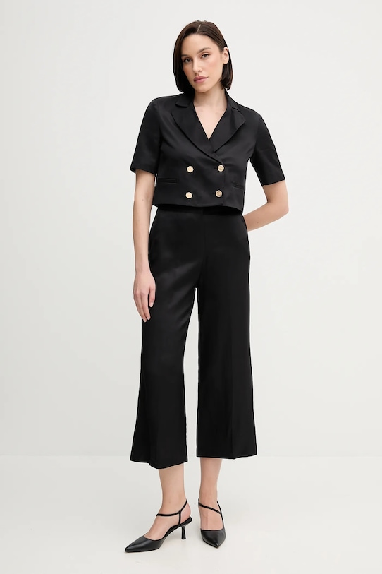 Брюки из коллекции Gaudi выполнены из гладкой ткани. Модель выполнена из исключительно комфортного материала с высоким содержанием вискозы. - Застежка на молнию, пуговицы и крючок. - Два накладных кармана спереди. - Штанина отутюживается в складку. - Ширина талии: 37 см. - Ширина бедер: 48 см. - Высота талии: 32 см. - Ширина штанины внизу: 33 см. - Ширина штанины: 32 см. - Длина по внутреннему шву: 63 см. - Размеры указаны для размера: 36.