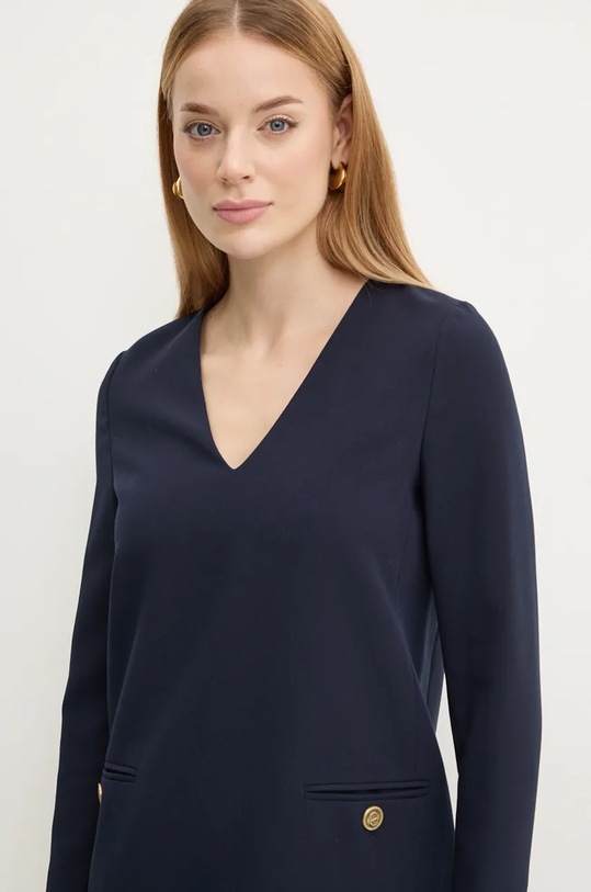 Это платье из коллекции Twinset выполнено из гладкой ткани. Благодаря содержанию полиэстера оно менее мнётся. - Простой дизайн, не стесняющий движений. - Длинный рукав. - Модель на подкладке. - Классический круглый вырез. - Застегивается на потайную молнию и крючок сзади. - Карманы на молнии. - Тонкий, слегка эластичный трикотаж. - Длина рукава: 62 см. - Длина: 85 см. - Ширина под мышками: 47 см. - Размеры указаны для размера: 36.