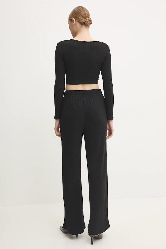 Комплект из свитера и брюк из коллекции Answear.LAB. Изготовлен из эластичного трикотажа, отличающегося исключительным комфортом, с высоким содержанием вискозы. - Приталенный верх и прямой низ. - Декоративные оборки. - Высокая талия с резинкой предотвращает скольжение во время движения. - Тонкий, эластичный трикотаж. - Два боковых накладных кармана. - Острый вырез. - Материал с металлической нитью. - Длина рукава: 57 см. - Длина: 37/40 см. - Ширина под мышками: 35 см. - Ширина талии: 32 см. - Ширина бедер: 41 см. - Высота талии: 36 см. - Ширина штанины внизу: 31 см. - Ширина штанины: 29 см. - Длина внешней части штанины: 107 см. - Указаны размеры: S/M.