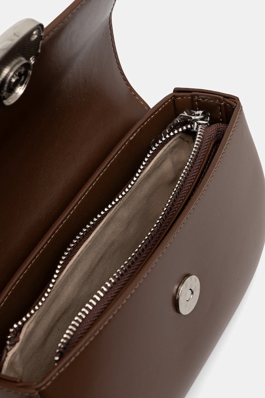 Небольшая сумочка из коллекции Answear.LAB. Модель на молнии выполнена из натуральной кожи. Материал плотный и хорошо держит форму. - Клапан застегивается на магнит. - Внутренний накладной карман для удобного и безопасного хранения мелких предметов. - Усиленное дно сумки позволяет изделию долго сохранять форму. - Сумка для ношения через плечо. - Имеет два съемных ремня - регулируемый и нерегулируемый. - Не подходит для формата А4. - Модель на подкладке. - Входящий в комплект тканевый чехол защищает изделие от пыли. - Количество внутренних накладных карманов: 1. - Глубина: 4,5 см. - Высота: 11,5 см. - Ширина у основания: 14 см. - Ширина в самом широком месте: 18,5 см.