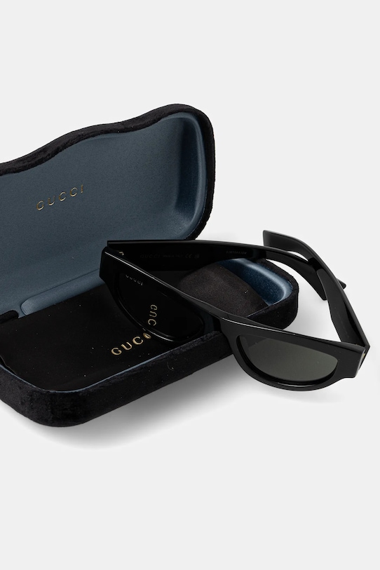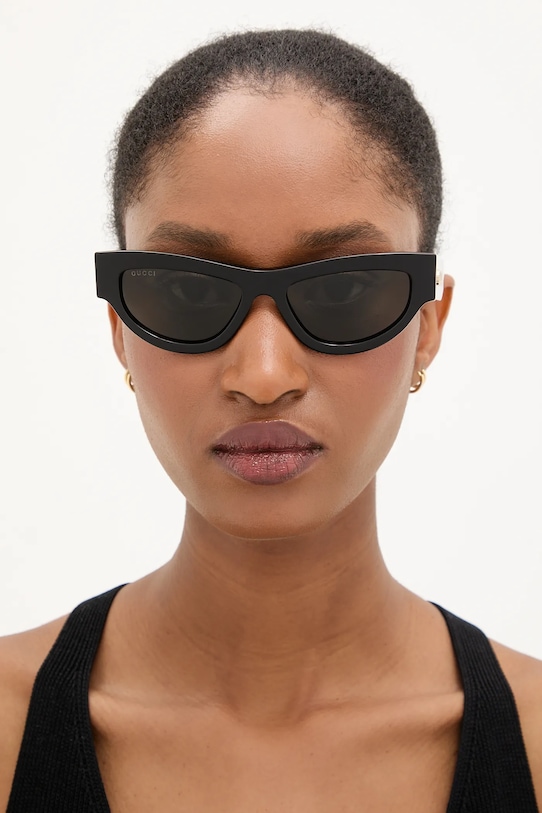 Солнцезащитные очки из коллекции Gucci. Эта модель с гладкими линзами и пластиковой оправой имеет защиту UV 400. Полученный вами футляр может отличаться от изображенного на фотографии. Производитель отправляет футляры случайным образом, поэтому выбрать футляр невозможно. - В комплект модели входят чехол и салфетка для протирки очков. - Форма оправы: кошачьи глаза. - Категория 3 (пропускает 8–18% света) — самая распространённая и универсальная категория затемняющих фильтров. Очки категории 3 идеально подходят для повседневного использования в солнечные дни и для отдыха в жарких странах. - Защитный фильтр UV400 защищает от ультрафиолетового излучения. - Ширина рамы: 140 мм. - Ширина линзы: 50 мм.