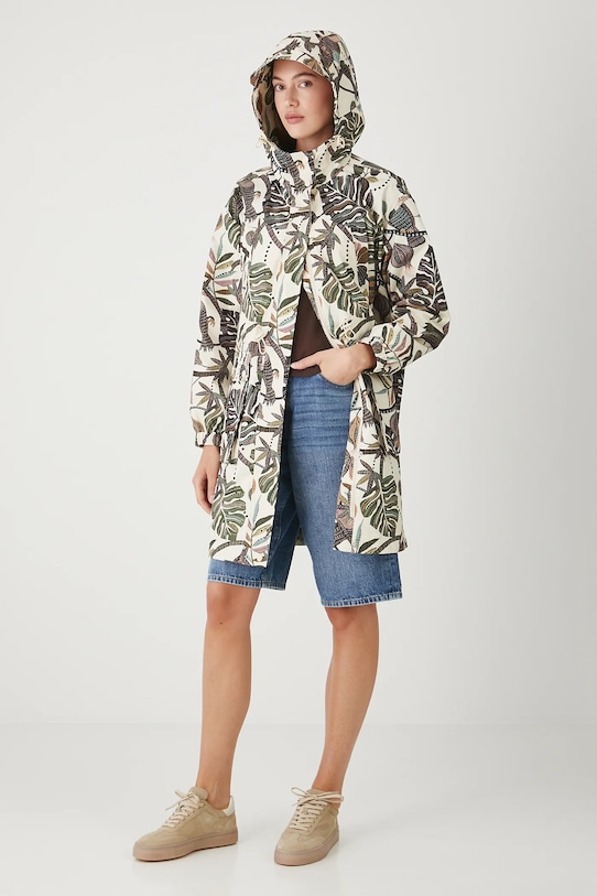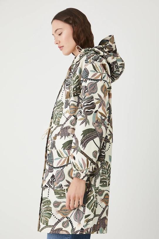 Парка из коллекции Medicine. Эта неутеплённая модель выполнена из ткани с рисунком. - Большой размер. - Длинный рукав. - Заниженная линия плеча. - Рукава отделаны ребристыми манжетами. - Застежка-молния и кнопки. - Капюшон с завязками и стопорами. - Модель с карманами, декорированными клапанами. - Регулировка ширины талии с помощью шнурков со стопорами. - Регулировка ширины внизу с помощью завязок со стопорами. - Неутепленная модель с подкладкой. - Узорчатый материал. - Узор с растительными и животными мотивами. - Длина рукава (от капюшона): 73,5 см. - Длина спереди: 93 см. - Длина спинки: 94,5 см. - Ширина груди: 62 см. - Размеры указаны для размера: S.
