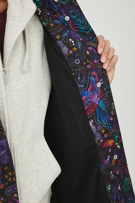 Парка из коллекции Medicine. Эта неутеплённая модель выполнена из ткани с рисунком. - Большой размер. - Длинный рукав. - Заниженная линия плеча. - Рукава отделаны ребристыми манжетами. - Застежка-молния и кнопки. - Капюшон с завязками и стопорами. - Модель с карманами, декорированными клапанами. - Регулировка ширины талии с помощью шнурков со стопорами. - Регулировка ширины внизу с помощью завязок со стопорами. - Неутепленная модель с подкладкой. - Узорчатый материал. - Узор с растительными и животными мотивами. - Длина рукава (от капюшона): 73,5 см. - Длина спереди: 93 см. - Длина спинки: 94,5 см. - Ширина груди: 62 см. - Размеры указаны для размера: S.