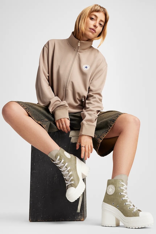 Кеды из коллекции Converse. Изготовлены из натуральной кожи с ворсистой отделкой и имеют текстильную подкладку, которая обеспечивает комфорт и позволяет легко содержать их в чистоте. - Круглый, прорезиненный носок. - Текстильная внутренняя часть комфортна для ног и облегчает содержание обуви в чистоте. - Стелька из пеноматериала Ortholite отводит влагу и предотвращает потливость ног. Она обладает антибактериальными и противогрибковыми свойствами, защищает от запахов и обеспечивает отличную амортизацию. - Усиленный задник обеспечивает отличную поддержку лодыжки и пятки. - Классическая шнуровка позволяет индивидуально подогнать обувь по ноге. - Платформенная модель. - Модель с блочным каблуком.