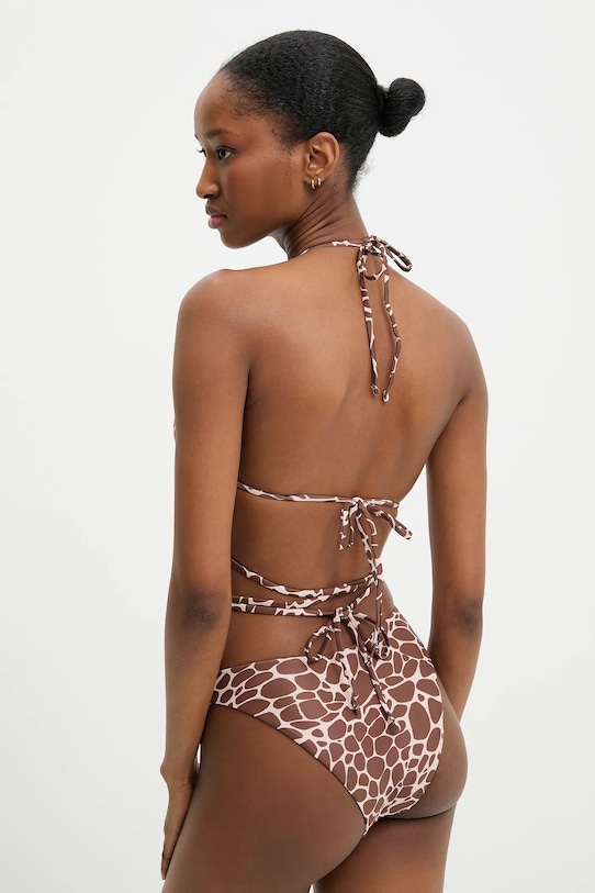 Раздельный купальник из коллекции Answear.LAB. Изготовлен из полиамида с узором, что обеспечивает повышенную прочность. - В комплект входят трусики-бюстгальтер и чашки со слегка уплотненными вставками. - Съемные подушечки слегка придают жесткость, стабилизируют бюст и обеспечивают дополнительную защиту. - Модель с несъемными бретелями. - Завязки обеспечивают индивидуальную посадку. - Модель с завязками сзади. - Чашка с дополнительным слоем материала в виде подкладки. - Приталенный крой со средней посадкой на талии предотвращает сползание во время движения. - Дополнительный слой материала в виде подкладки увеличивает покрытие и обеспечивает дополнительный комфорт во время активности.