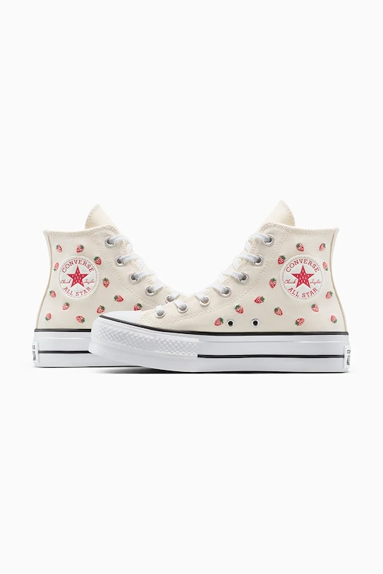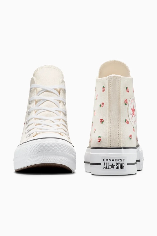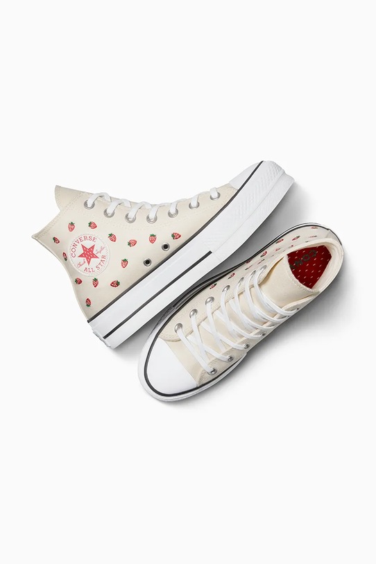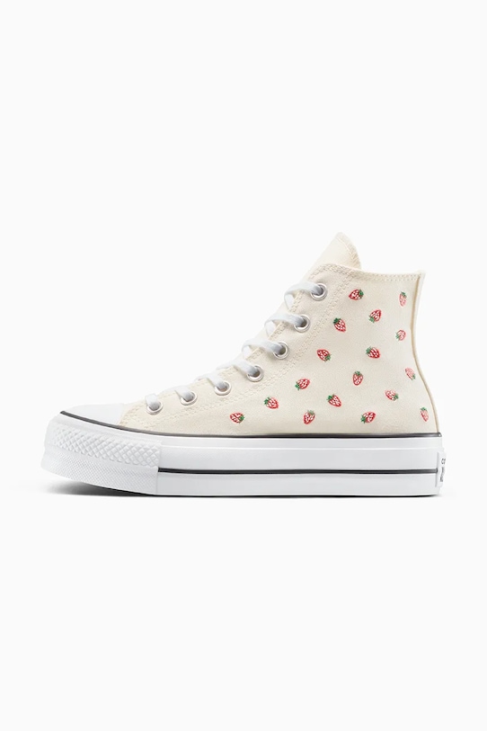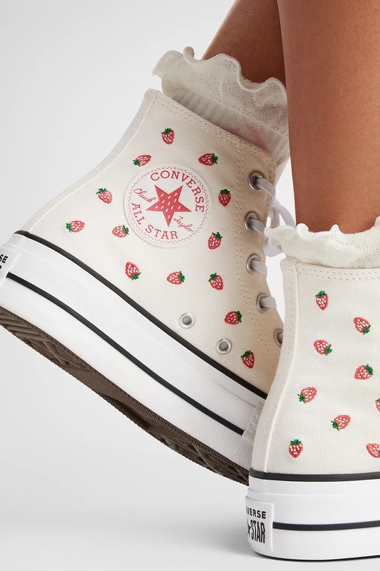 Кеды из коллекции Converse. Изготовлены из текстиля с аппликациями и оснащены гибкой резиновой подошвой, которая прочна и устойчива к повреждениям. - Круглый, прорезиненный носок. - Текстильная внутренняя часть комфортна для ног и облегчает содержание обуви в чистоте. - Стелька из пеноматериала Ortholite отводит влагу и предотвращает потливость ног. Она обладает антибактериальными и противогрибковыми свойствами, защищает от запахов и обеспечивает отличную амортизацию. - Усиленный задник обеспечивает отличную поддержку лодыжки и пятки. - Классическая шнуровка позволяет индивидуально подогнать обувь по ноге. - Платформенная модель. - Резиновая подошва прочная и устойчивая к повреждениям.