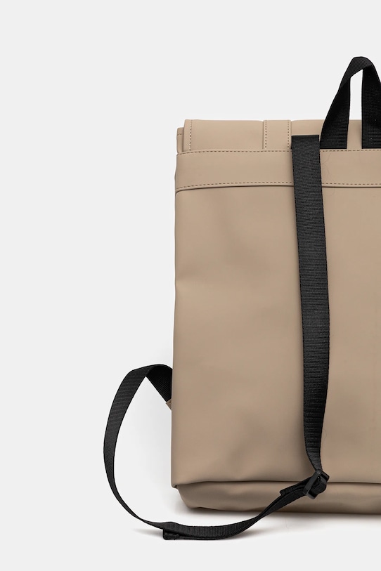 Рюкзак из коллекции Rains. Изготовлен из синтетического материала. - Модель с повышенной водонепроницаемостью. Водостойкость означает повышенную устойчивость к воздействию воды. Изделие сохраняет свои свойства при контакте с водой, что обеспечивает больший комфорт благодаря более низкому порогу водопроницаемости, но не гарантирует полной водонепроницаемости. - Клапан застегивается на два крючка-карабина. - Модель на подкладке. - Вмещает формат А4. - Внутренний карман на молнии. - Короткая ручка для удобной переноски в руке. - Регулируемые ремни позволяют индивидуально подгонять их длину под пользователя. - Глубина: 11 см. - Высота: 35 см. - Ширина у основания: 31,5 см.
