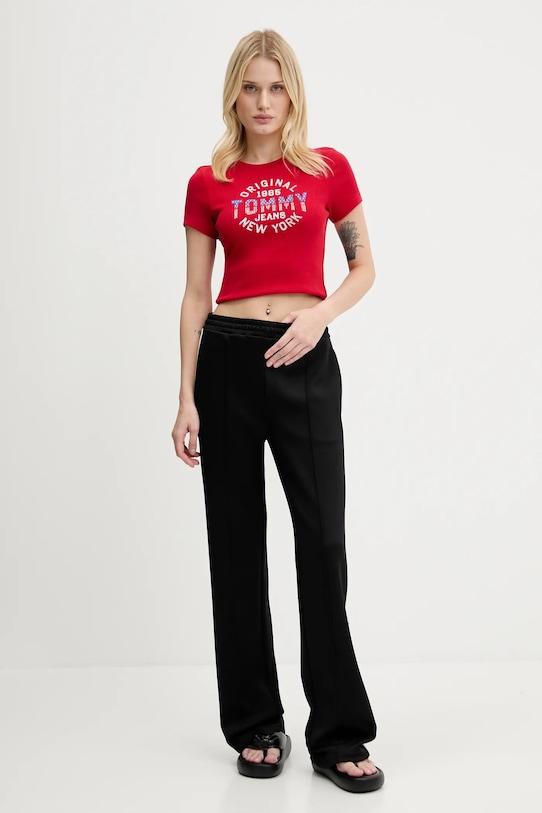 Футболка из коллекции Tommy Jeans выполнена из тонкой, высокоэластичной ткани. Модель выполнена из исключительно комфортного материала с высоким содержанием хлопка. - Эта модель содержит регенерированные хлопковые волокна. Новые волокна и пряжа производятся из старых текстильных отходов и используются для производства новой одежды. - Приталенный крой, не стесняющий движений. - Классический круглый вырез. - Модель выполнена из трикотажного полотна в рубчик, которое отличается особой эластичностью и мягкостью, благодаря чему хорошо облегает тело и обеспечивает комфорт при носке. - Плоские швы защищают кожу от натирания и раздражения и обеспечивают высокий уровень комфорта во время занятий спортом.