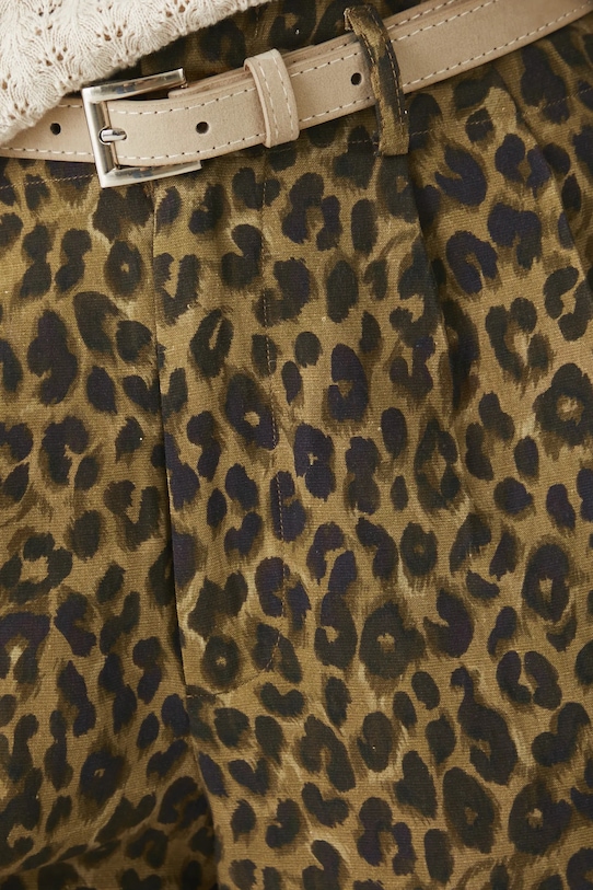 Шорты из коллекции Medicine. Изготовлены из смесовой льняной ткани. - Материал с сертификатом OEKO-TEX Standard 100 гарантирует, что текстильные изделия, на которых он нанесен, не содержат вредных и потенциально опасных для человека и окружающей среды веществ. - Материал с добавлением льна обеспечивает комфорт и воздухопроницаемость. - Обычная посадка. - Модель с высокой талией, застежкой на молнию и крючок. - Ремешок в комплекте. - Декоративные закладки. - Узорчатая ткань. - Леопардовый узор. - Ширина талии: 37 см. - Ширина бедер: 50 см. - Высота талии: 33 см. - Ширина штанины внизу: 34 см. - Длина по внутреннему шву: 11 см. - Размеры указаны для размера: S.